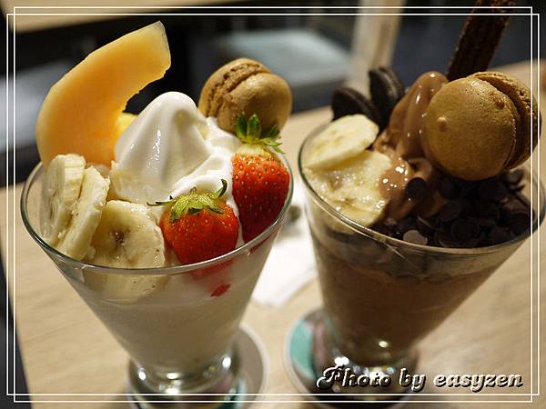 甜品:繽紛水果精典優酪百匯,濃情蜜義巧克力優格百匯,