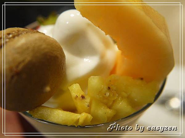 優格霜淇淋的酸度有比剛剛三明治前菜來的酸一些,